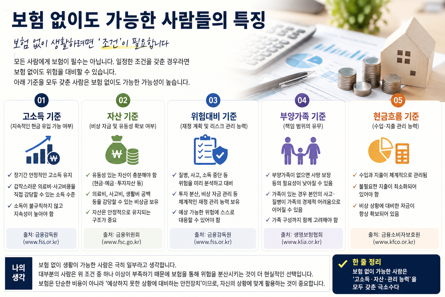 👉 보험 없이 가능한 사람은 ‘고소득·자산·관리 능력’을 모두 갖춘 극소수다